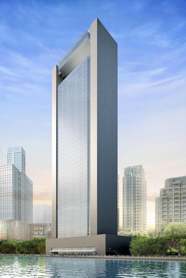 Post-tensioned box girder transfer beams were considered to be the most cost-effective solution for bridging the 52 m clear span.