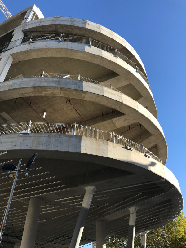 Post-tensioned slabs allowed a significantly condensed construction programme.